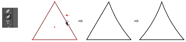 作成した三角形に曲線ツールで少しカーブをつけます
