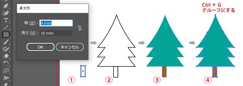 ① 長方形ツールで長方形を作成する
