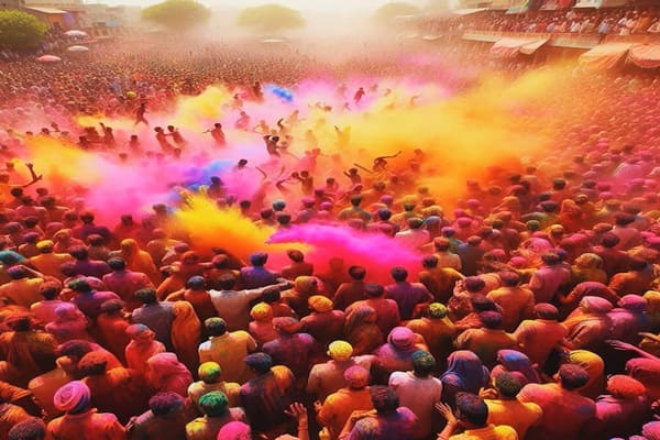 ホーリーは色の祭りで、春の訪れを祝います。 人々は色水や色粉をかけ合い、楽しみます。 友情と喜びの象徴です。