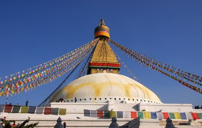 Boudhanath Stupa, located in Kathmandu, Nepal, is one of the largest spherical stupas in the world and a UNESCO World Heritage Site.