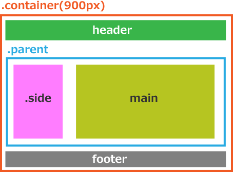 <div class="side">~</div>がサイドバーとなります