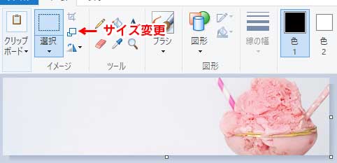 次にサイズの変更をします。サイズ変更アイコンをクリックしてください。