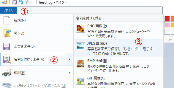 ファイル → 名前を付けて保存 → JPEG画像