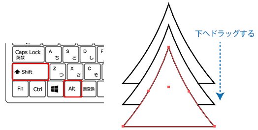 Alt + Shiftキーを押しながら三角形をたてに並べます