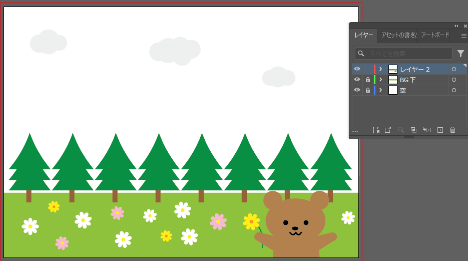 レイヤー「BG下」「空」は後で使用するためロックしてあります。