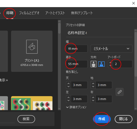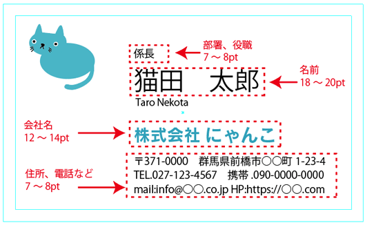 テキストやロゴマークなどは名刺サイズより3mm内側に入れてください