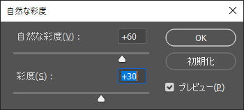イメージ → 色調補正 → 自然な彩度(+60)または