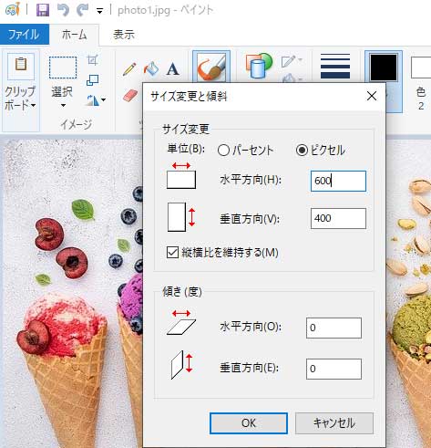 ❷「photo1.jpg」を右クリックしてペイントで開きます。